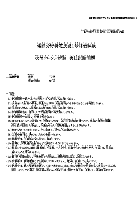 「吹付ウレタン断熱」職種の「教本テキスト」「実技試験問題」「学科試験サンプル問題」を下記に掲載致します。